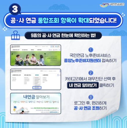 ③ 공·사 연금 통합조회 항목이 확대되었습니다!